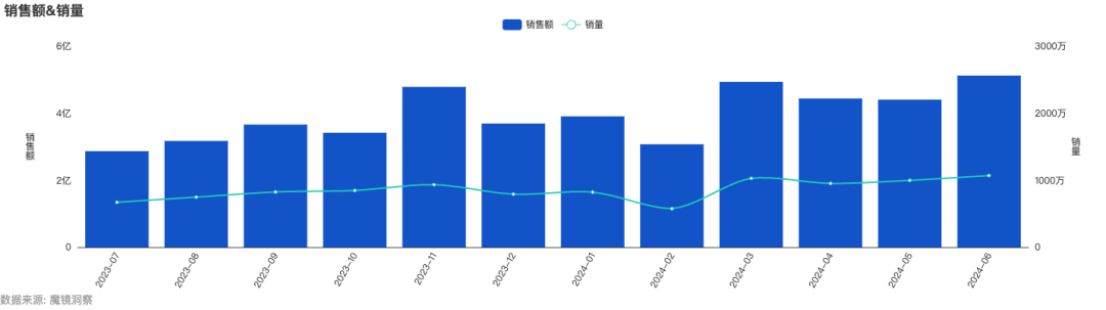 2023年7月-2024年6月主流电商平台高蛋白食品饮品销售趋势