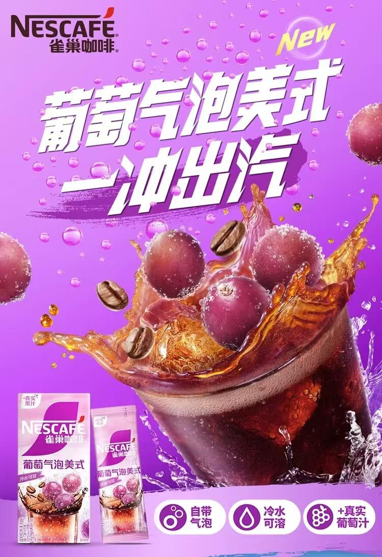 雀巢咖啡推出了一款创新产品——葡萄气泡美式速溶咖啡,这款葡萄气泡美式速溶咖啡的独特之处,在于它不仅满足了现代消费者对经典咖啡的需求,还注入了更多创意和清新感。尤其加入真实的葡萄汁,使得咖啡的口感更加香醇宜人,同时提供了低热量的健康选择——热量甚至低于1颗苹果,非常适合注重健康的消费者。雀巢咖啡通过这一创新产品,成功融合了传统与现代、经典与新潮的元素,展现了品牌一贯追求品质与创新并存的理念,打造出了一款既具现代感又不失咖啡本质风味的全新饮品。