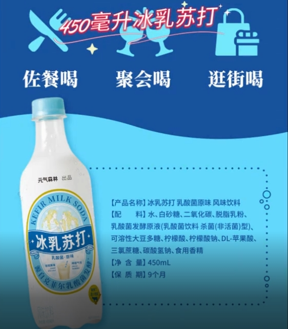 元气森林推出了一款名为“冰乳苏打”的“乳饮+气泡”饮品,主打健康配方,采用新西兰进口奶源和6种菌株协同发酵,旨在为消费者提供更具营养的选择。每瓶的热量低于一个苹果(约50大卡),十分适合佐餐或聚会等多样化的消费场景。