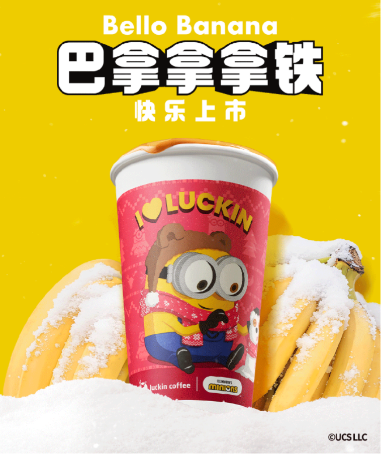 12月15日,瑞幸咖啡携手小黄人推出联名新品「巴拿拿拿铁」,新品甄选厄瓜多尔进口香蕉,搭配100%阿拉比卡深烘咖啡豆,将果香与咖啡香完美融合。厄瓜多尔香蕉自带天然清甜,阿拉比卡豆经深度烘焙后释放出坚果与巧克力风味,二者碰撞出香浓醇厚的口感,甜而不腻且层次丰富。