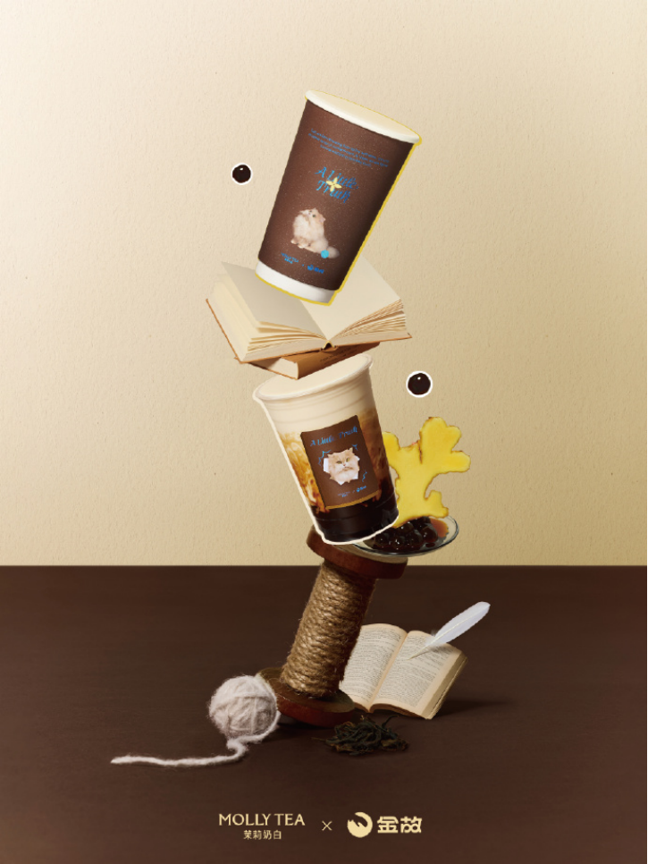 5.茉莉奶白携手金故猫舍顶流「方小小」推出联名花香姜茶系列