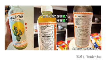 欧美品牌Trader Joe推出的Kefir发酵气泡水,采用Kefir菌群共生发酵“水”基底,风味上呈现柑橘与苹果的酸甜与乳酸菌的柔和甜香交织,与普通饮料强烈的碳酸冲击形成鲜明对比。产品气泡绵密细腻,口感像果香叠加的热带水果气泡鸡尾酒,还特别添加电解质,运动后饮用不仅清爽解渴,还可助力疲劳恢复。