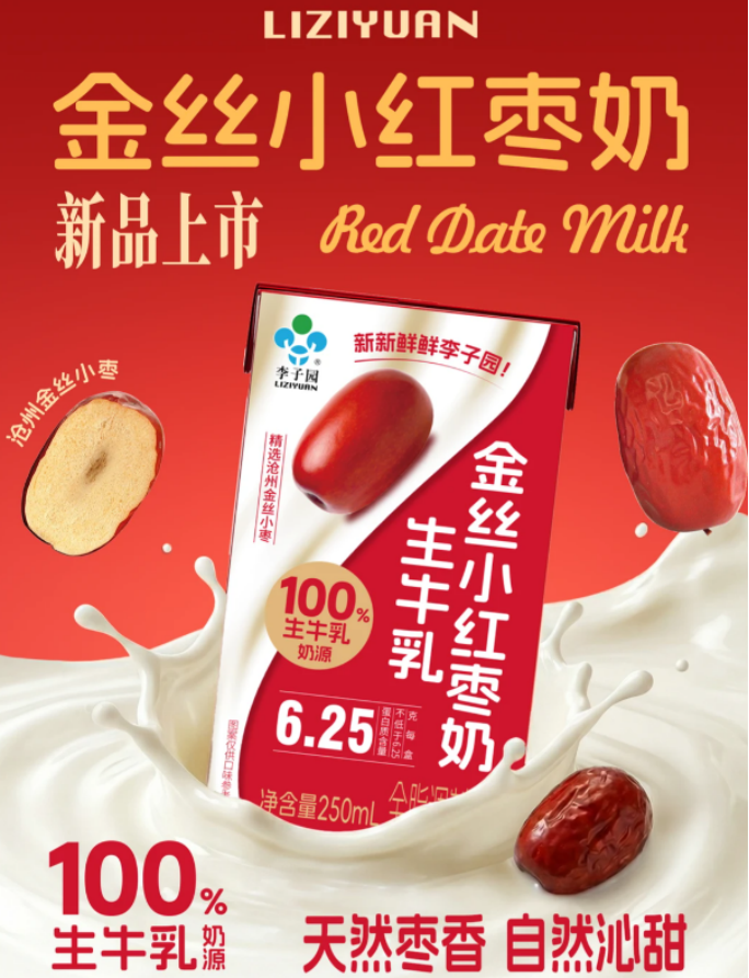 近日,李子园上新「金丝红枣生牛乳」。新品坚守品质底线,采用100%生牛乳为基底,生牛乳含量不低于80%,搭配真实红枣果酱,其中金丝小枣占比超70%,兼具牛乳醇厚与红枣香甜。营养层面,新品每100ml含2.5g原生乳蛋白,饱和脂肪仅0.6g、钠68mg,低负担属性适配儿童学生、上班族、减肥健身者及中老年群体。金丝小枣富含铁、维生素等营养素,与生牛乳协同实现营养互补,既延续品牌对健康功能的布局,也进一步丰富了全场景饮用选择,巩固其在大众乳饮赛道的优势。