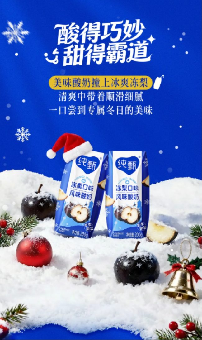 近日,纯甄推出冬日限定新品「冻梨口味风味酸奶」,以北方特色食材打造季节限定风味。新品选用法国进口双菌株发酵,通过欧盟标准认证,还原冻梨的清甜口感,兼具酸奶的醇厚与果味的清爽。作为北方冬季特色果品,冻梨富含有机酸、膳食纤维等营养成分,清热利咽且助消化,与酸奶营养互补。新品单瓶净含量200g,适配早餐、户外等多种场景。