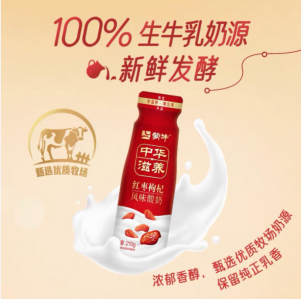 蒙牛中华滋养红枣枸杞风味酸奶,将传统养生智慧与现代乳制品工艺完美融合。严选100% 生牛乳为基底,搭配新疆灰枣与宁夏中宁枸杞的“黄金CP”,奶香与红枣的甘甜、枸杞的淡雅风味层层交织,甜度温和不腻。每瓶富含5.2克蛋白质,搭配食材天然营养,饮用无负担。为日常注入温润滋养,带来舌尖与身心的双重愉悦。