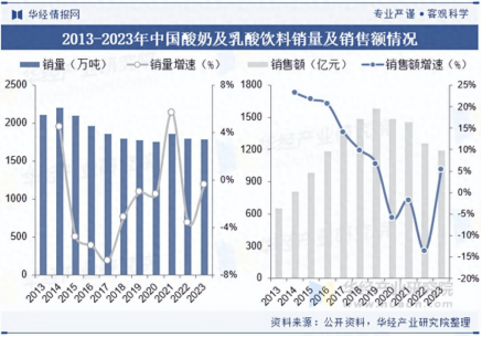 在健康饮食理念盛行的当下,酸奶市场正经历着深刻变革。酸奶凭借其丰富营养与多元口感,收获众多消费者的喜爱。市场规模稳步扩张,特别是中国市场,已成为全球酸奶行业增长的重要驱动力。根据华经情报网数据,2023年我国销售额为1191亿元,同比增长5.30%,彰显出酸奶市场强大的消费潜力。