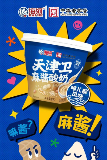海河乳品推出天津卫麻酱酸奶巧妙将天津特色风味融入其中,给味蕾带来全新的奇妙体验。特别添加由芝麻和花生研磨而成的天津特色麻酱,经传统工艺精心研磨,浓郁厚重的麻酱完美激发纯粹本味。地道麻酱与细腻酸奶相遇,口感香醇浓厚,主打“哏儿都风味”。据品牌介绍,每100g天津卫麻酱酸奶含4.8g蛋白质,是国家标准的2倍多。无论是搭配煎饼果子开启活力早晨,还是在午后听相声时当作茶点,亦或是在夜晚撸串时用来解腻都格外适配。
