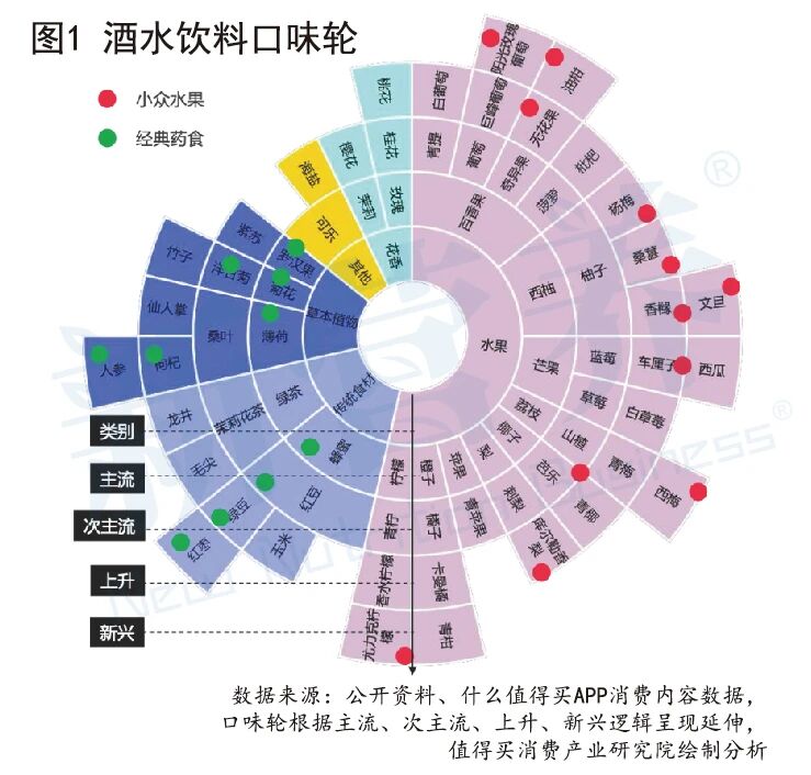 口味始终是食品饮料的“命脉根本”。饮料产品想要脱颖而出,便寄希望于新口味带来的爆点。在传统口味竞争日益激烈,已然成为一片红海时,小众轻奢水果与经典食药成为“破圈利器”。如何破解单宁带来的“涩”感难题,成为打造新口味、提升产品竞争力的关键所在。(见图1)