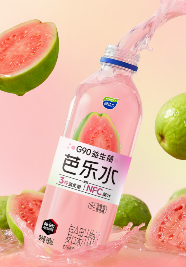 4月7日,均瑶味动力上新「G90益生菌芭乐水」,新品以NFC芭乐汁搭配三种活性益生菌,采用全程冷链运输保持活性菌存活。产品采用轻负担配方,口感清甜爽口,还原水果自然风味,适配日常补水、佐餐解腻、休闲饮用等多元场景。