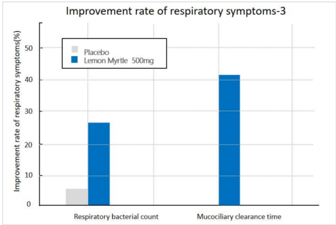 2025年,Mohd Zarif Fikri Bin Mohd等科学家做了为期8周的双盲、安慰剂对照临床试验,纳入了80名被诊断为慢性支气管炎和过敏性鼻炎的参与者。受试者被随机分配接受每日500毫克LEMOPONE® 柠檬香桃叶超微粉或安慰剂