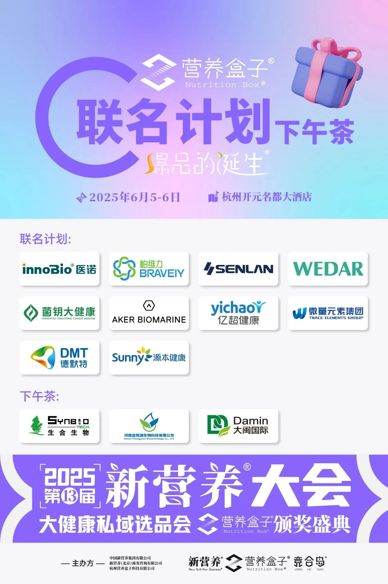 2025年6月5-6日,2025第13届新营养大会·大健康私域选品会暨营养盒子颁奖盛典将在杭州开元名都大酒店隆重举行。
