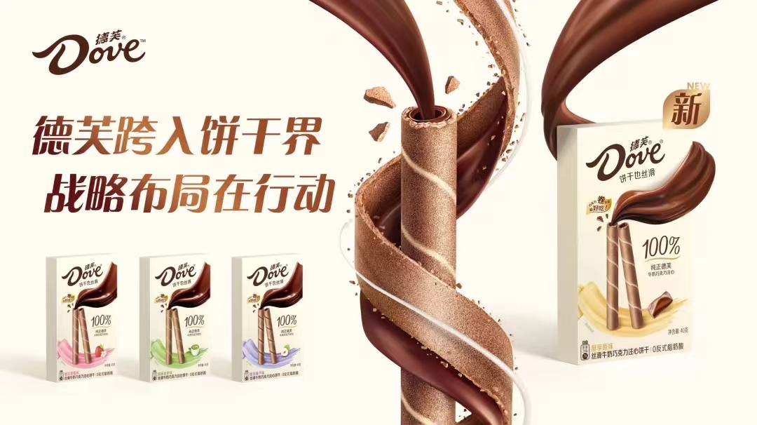 近日,德芙在中国市场推出第一款饼干产品——丝滑牛奶巧克力注心饼干系列。