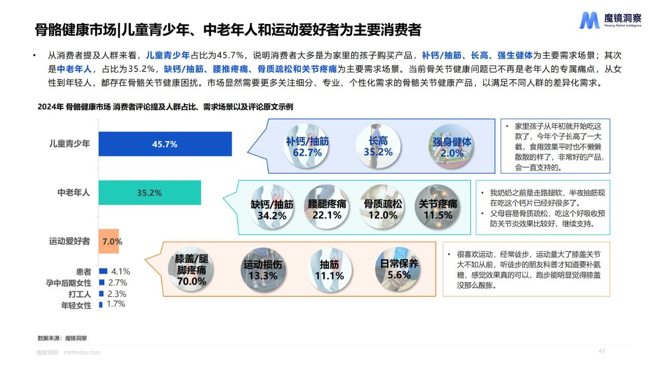 人口老龄化、骨骼健康意识提升、科学喂养促使骨骼健康行业快速发展,人群需求更加细化