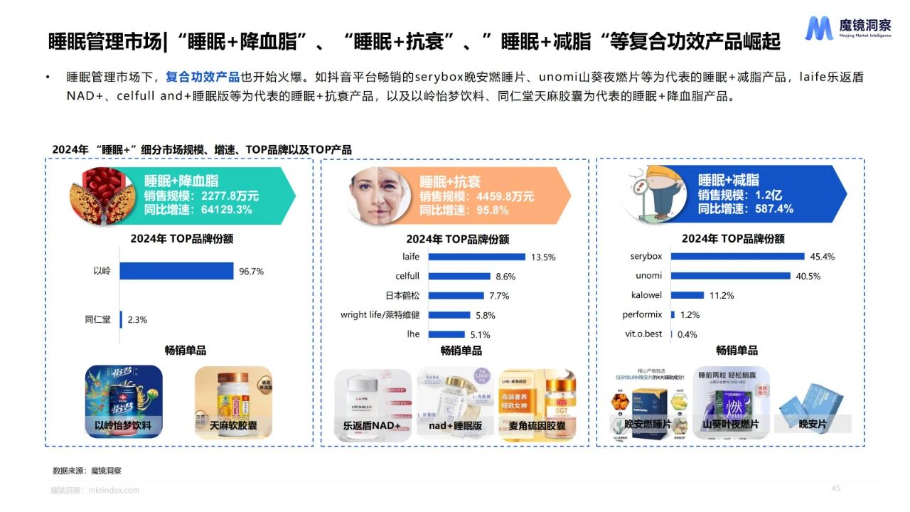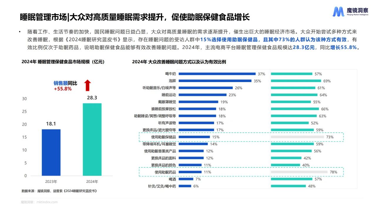 大众对高质量睡眠需求提升,促使助眠保健食品规模增长,药食同源成分应用增加,睡眠+复合功效产品崛起