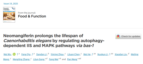 近日,湖南中医药大学研究人员在" Food & Function "期刊上发表了一篇题为" Neomangiferin prolongs the lifespan of Caenorhabditis elegans by regulating autophagy-dependent IIS and MAPK pathways via bas-1 "的研究论文。研究显示,芒果中天然存在的活性成分新芒果苷,能够通过调节多个关键衰老相关通路,显著延长线虫寿命,平均寿命延长了23%,并改善了其健康状态。