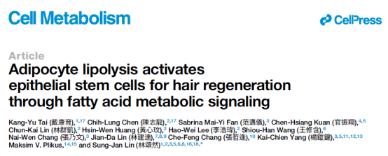 2025年10月22日,中国台湾大学研究人员在“Cell Metabolism”期刊上发表了一篇题为“Adipocyte lipolysis activates epithelial stem cells for hair regeneration through fatty acid metabolic signaling”的研究论文。研究显示,皮肤损伤会引发脂肪细胞的脂解,释放不饱和脂肪酸,通过代谢信号通路激活上皮毛囊干细胞,进而促进毛发再生。