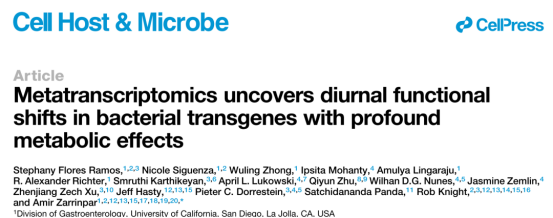 文章主要研究了限时进食(TRF)如何通过调控肠道微生物的昼夜节律和功能表达,进而改善宿主代谢健康。研究结合了宏转录组学(metatranscriptomics)和合成生物学方法,揭示了TRF对肠道细菌功能基因(尤其是胆汁盐水解酶,BSH)时间依赖性表达的调控作用,并验证了这些功能基因在改善代谢疾病中的潜力。