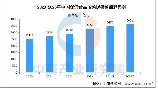 2025年度,中国保健食品市场延续全年的增长态势,在居民健康消费需求释放与政策红利的双重驱动下,市场规模实现稳健扩容。据中商产业研究院数据显示,2020-2025年间中国保健食品市场规模从2503亿元逐步增长至3601亿元,年复合增长率约为6.5%;其中2023年市场规模达3282亿元,2024年增至3475亿元,2025年顺利突破3600亿元,达到3601亿元。这一稳步攀升的增长曲线,既体现出“健康中国”战略背景下居民健康消费需求的持续升级,也为2025年度保健食品市场的稳健发展筑牢坚实的行业基本面支撑。