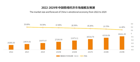 根据艾媒咨询数据显示,中国情绪经济市场规模呈上升趋势,2024年中国情绪经济市场规模达23077.67亿元,预计2029年将突破4.5万亿元。艾媒咨询分析师认为,中国情绪经济市场规模上升趋势明显且增长速度加快,这一现象是社会压力、消费观念转变以及技术进步等多种因素共同作用的结果。随着市场的不断发展与成熟,未来情绪经济有望持续保持高速增长,在满足消费者精神需求的同时,为经济增长注入新的活力,创造更多的商业机遇与社会价值。