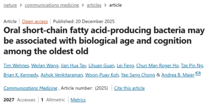 研究成果发表在论文《Oral short-chain fatty acid-producing bacteria may be associated with biological age and cognition among the oldest old》中,为理解健康老龄化打开了新的窗口。研究团队发现,生物年龄明显低于实际年龄的个体,其口腔菌群展现出独特的特征,尤其是那些能够产生短链脂肪酸(SCFAs)的细菌丰度较高。短链脂肪酸,诸如乙酸、丙酸和丁酸,被视为肠道健康的“明星代谢产物”,它们通过抗炎和调节免疫等作用,对全身健康至关重要。