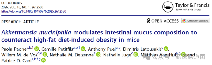 2026年1月7日,鲁汶大学团队在《Gut Microbes》(IF=11.0)上发表研究论文“Akkermansia muciniphila modulates intestinal mucus composition to counteract high-fat diet-induced obesity in mice”,本研究探讨了活体的Akkermansia muciniphila MucT补充剂可以通过调节肠道黏液的产生、分泌和成分,来抵消高脂饮食(HFD)引起的肥胖和代谢功能障碍。