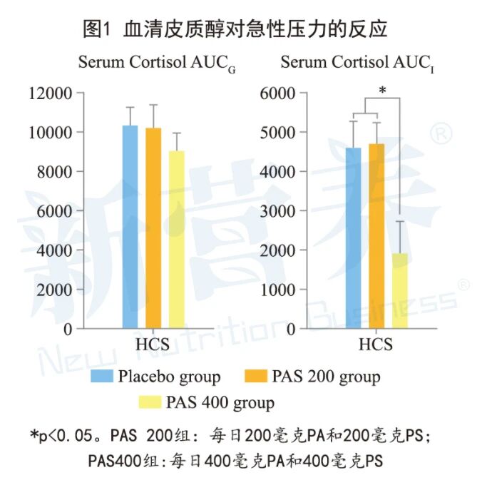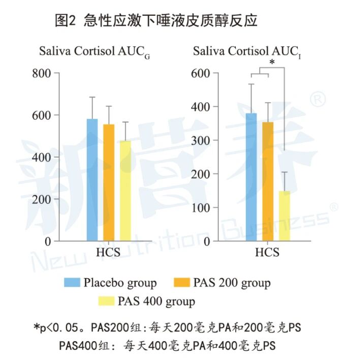 结果显示,与安慰剂组相比,PAS400组在面对急性压力时,ACTH、唾液和血清皮质醇反应显著降低,表明PS能帮助身体更好地应对压力[1]。