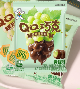 旺旺糖果上新「QQ 巧克力」,外层是进口纯可可脂做的脆壳,里层是弹弹软软青提果汁QQ糖,一层脆一层弹酸甜结合得刚刚好。