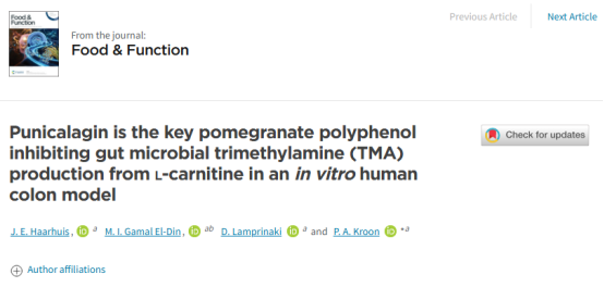 2026年2月2日,英国Quadram研究所在" Food & Function "期刊上发表了一篇题为"Punicalagin is the key pomegranate polyphenol inhibiting gut microbial trimethylamine (TMA) production from l-carnitine in an in vitro human colon model"的研究论文。研究显示,石榴中的安石榴苷多酚成分,能显著抑制肠道菌群将L-肉碱转化为有害代谢物三甲胺,且几乎完全阻断其生成,进而降低心血管疾病风险,这一发现为通过饮食预防心血管疾病提供了理论依据。