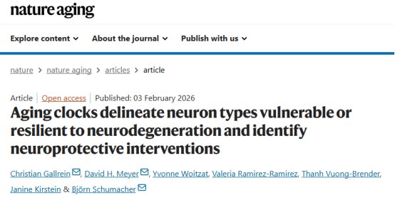 2026年2月3日,德国科隆大学研究人员在衰老领域顶尖期刊"Nature Aging"上发表了一篇题为"Aging clocks delineate neuron types vulnerable or resilient to neurodegeneration and identify neuroprotective interventions"的研究论文。这项研究解码了神经元的衰老密码,结果显示,不同神经元类型衰老的速度具有显著差异,蛋白质翻译是神经元衰老关键驱动因素。重要的是,研究团队成功找到两种具有神经保护作用的化合物:丁香酸和伐诺司林,丁香酸是一种天然存在于橄榄、核桃、葡萄等植物中的酚类物质。