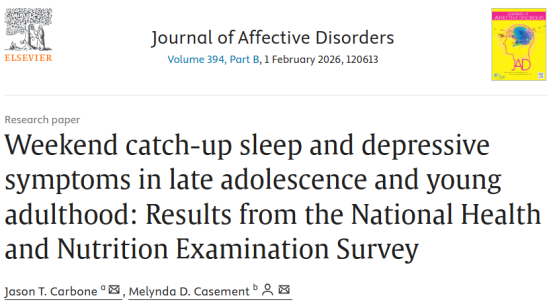 这项基于美国国家健康与营养调查数据的研究,首次在具有全国代表性的16-24岁青年群体中发现:周末“补觉”,可能与显著降低的抑郁风险有关。该研究题为“Weekend catch-up sleep and depressive symptoms in late adolescence and young adulthood: Results from the National Health and Nutrition Examination Survey”,发表在Journal of Affective Disorders杂志。研究显示,与周末不补觉的同龄人相比,有周末补觉习惯的青少年和年轻人,出现每日抑郁症状的几率要低41%。这一发现,为困扰全球的青年心理健康危机提供了一个简单、可行且几乎零成本的潜在干预思路。