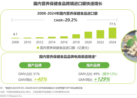中国跨境营养保健食品市场从“代购”起家,从市场数据来看,近年来跨境赛道高速增长并呈现高集中度格局,2008-2024年进口额从4.1亿美元增至77.5亿美元,16年复合增长率达20.2%,显著高于整体市场增速。与之形成鲜明对比的是,“假洋牌”、产品检测不合格、非法添加等乱象已触达行业容忍底线。