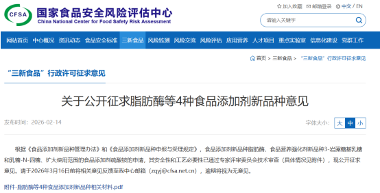 脂肪酶等4种食品添加剂新品种公开征求意见!