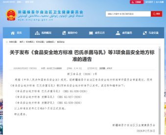 《食品安全地方标准 发酵驴乳》(DBS 65/028-2026)以上标准自发布之日起6个月后正式实