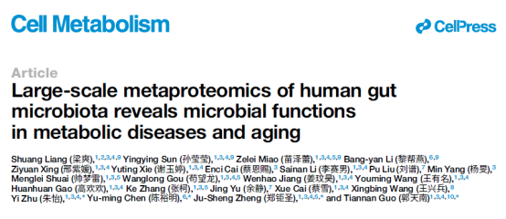 2026年3月13日,西湖大学郭天南、郑钜圣等人在"Cell Metabolism"期刊上发表了一篇题为"Large-scale metaproteomics of human gut microbiota reveals microbial functions in metabolic diseases and aging"的研究论文,该研究全员中文属名。