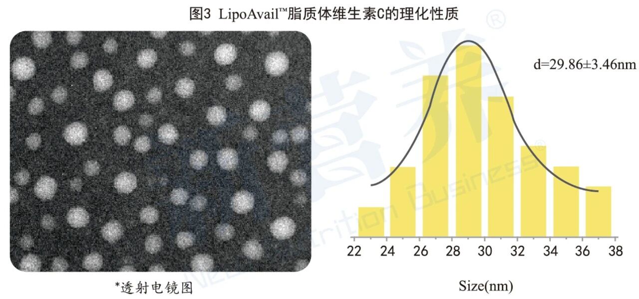 与此同时,动物试验也证实了LipoAvail™脂质体能让维生素C的相对吸收提升约7.9倍,进一步显示了这一技术的优势。检测LipoAvail™脂质体维生素C的理化性质,呈现规则的球形形状、粒径分布均匀,在粉剂、片剂、硬胶囊、软糖等多种剂型中均能保持良好的稳定性与分散性,为品牌方开发多元化、差异化的维生素类产品提供核心支撑。