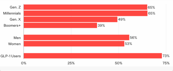 大众对蛋白质的需求已彻底打破健身圈层壁垒,全面走向普通消费群体。数据显示,2025年Google平台“protein(蛋白质)”搜索指数再度刷新历史峰值;市场调研同步印证消费热潮,71%的年轻消费者察觉到各大品牌纷纷加码高蛋白配方产品;65%的年轻群体主动增加日常蛋白质摄入,且多数人是近一年内养成相关习惯,需求具备强时效性与高增长性。