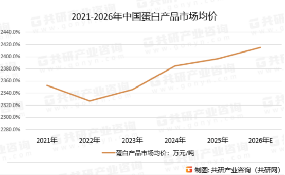 从市场价格走势来看,2021-2026年中国蛋白产品市场均价呈现先稳升、再提速、后高位运行的趋势。2022年受市场供需波动影响,均价出现小幅回落,但随后迅速回升并开启连续增长通道,2024年突破2400万元/吨关口,2026年预计将进一步攀升至2420万元/吨以上。这一价格走势背后,是蛋白产品核心价值的持续升级与消费需求的刚性增长。