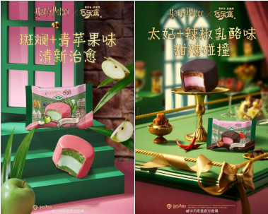 巧乐兹携手哈利・波特推出蜂蜜公爵主题巧克力冰淇淋蛋糕,以霍格莫德魔法糖果店为灵感,打造巫师专属美味。外层酥脆巧克力脆皮,包裹绵密双层蛋糕与丝滑冰淇淋,三重口感层层递进。创新融合斑斓青苹果的清新治愈,搭配辣椒乳酪太妃的甜辣惊喜,复刻魔法世界的奇幻风味。整体设计融入蜂蜜公爵经典元素,颜值与美味兼具,一口解锁霍格沃茨的甜蜜魔法。