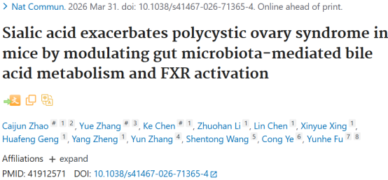 唾液酸通过肠菌胆汁酸代谢及FXR激活,加剧PCOS