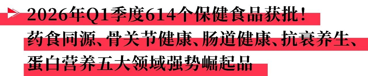 上一篇:2026年Q1季度614个保健食品获批!药食同源、骨关节健康、肠道健康、抗衰养生、蛋白营养五大领域强势崛起
