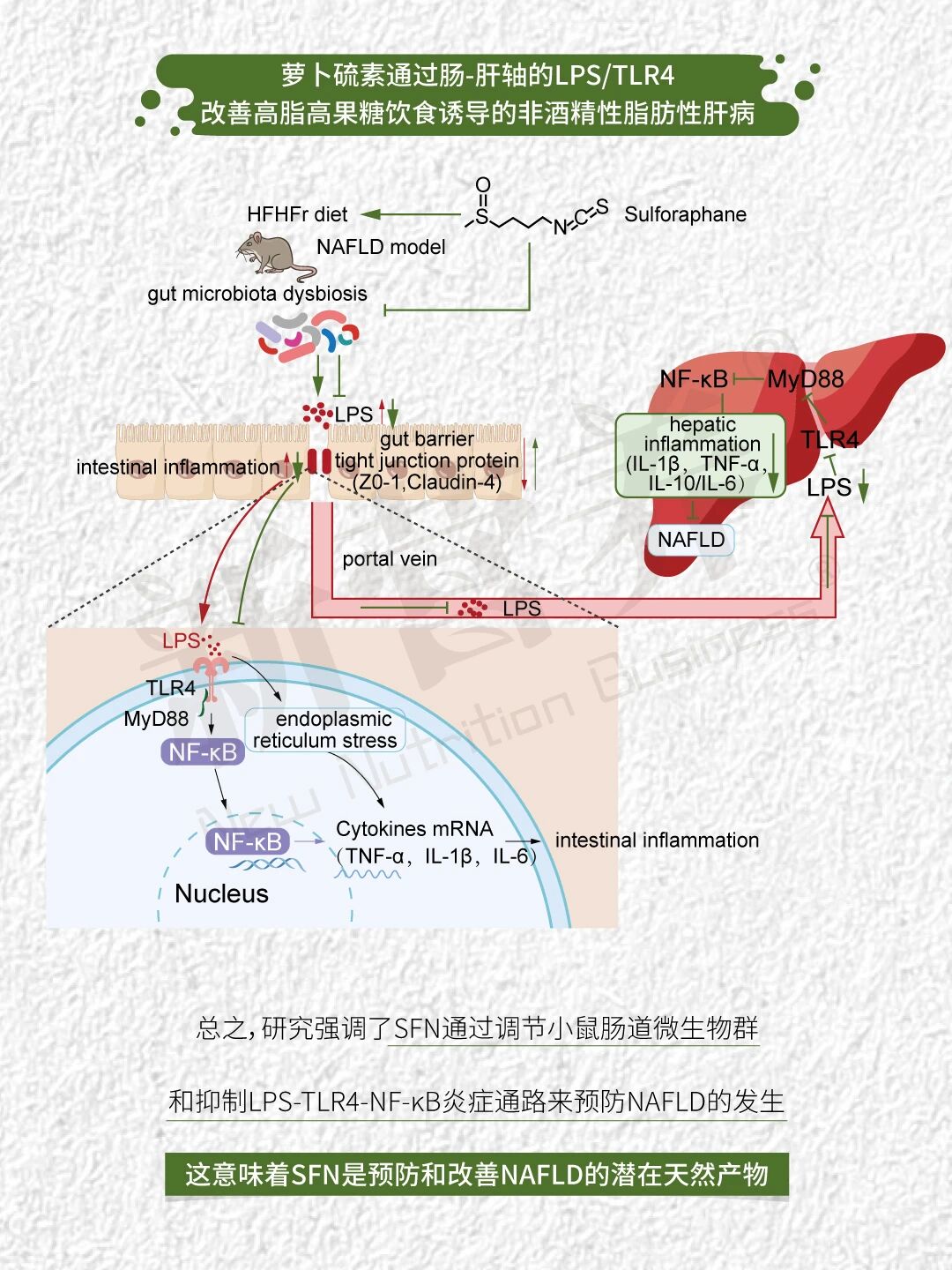 肠-肝轴再添新证!食源成分「萝卜硫素」或是调节肠道菌群改善“非酒精性脂肪肝”新希望