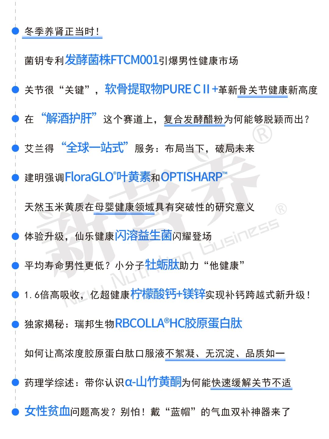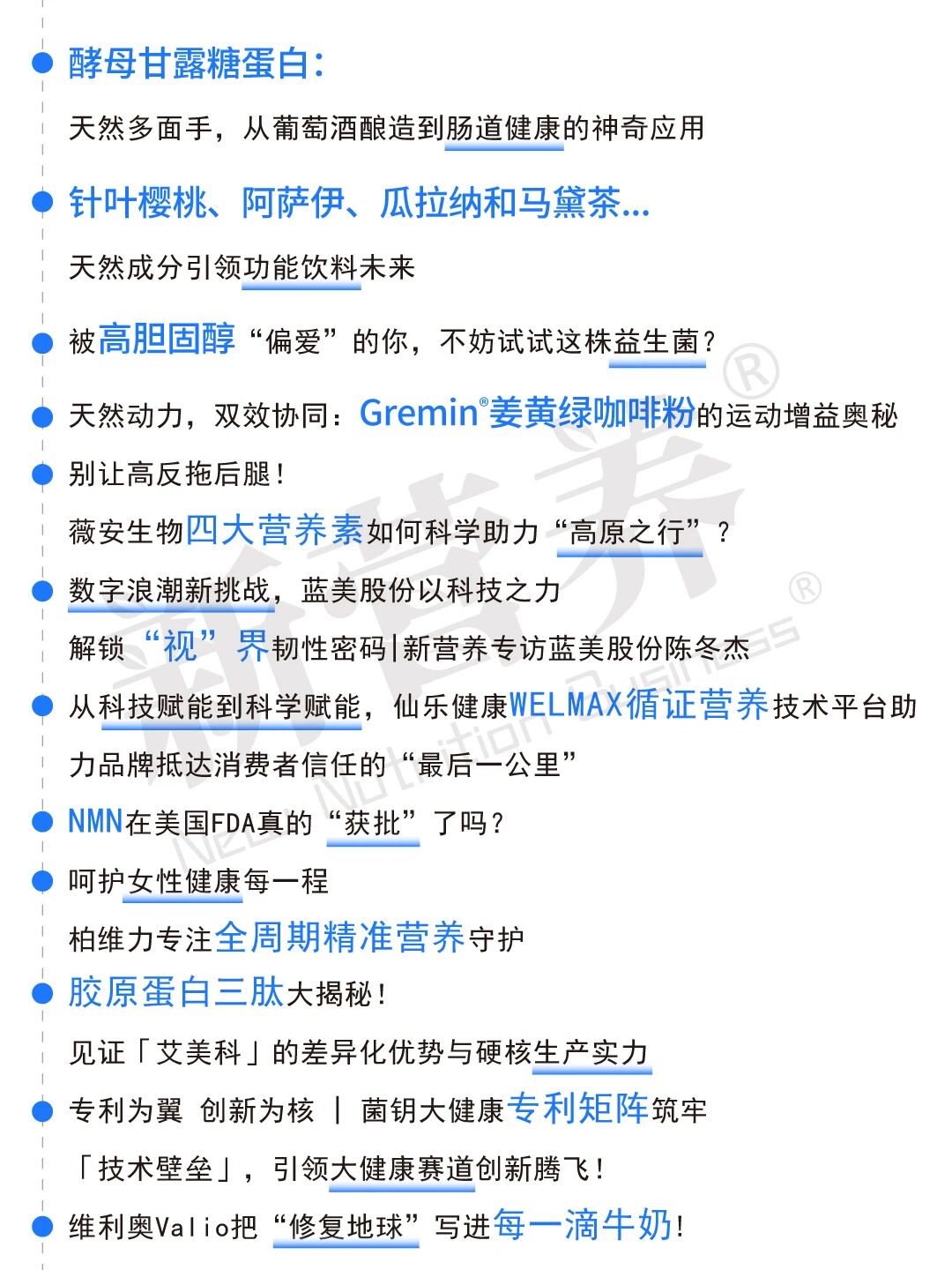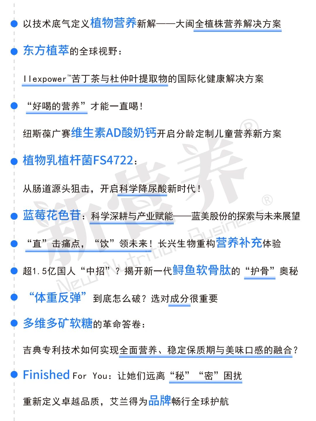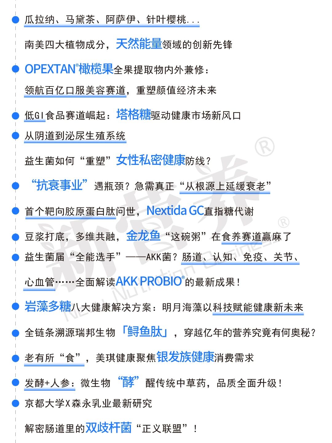 *文章中涉及功效信息内容均有对应的数据支持,囿于篇幅限制无法全部刊登,如需数据来源,可向新营养(xinyingyang.com)或文章中涉及到的企业索取。文章图片部分来源于网络,如有侵权请告知删除。