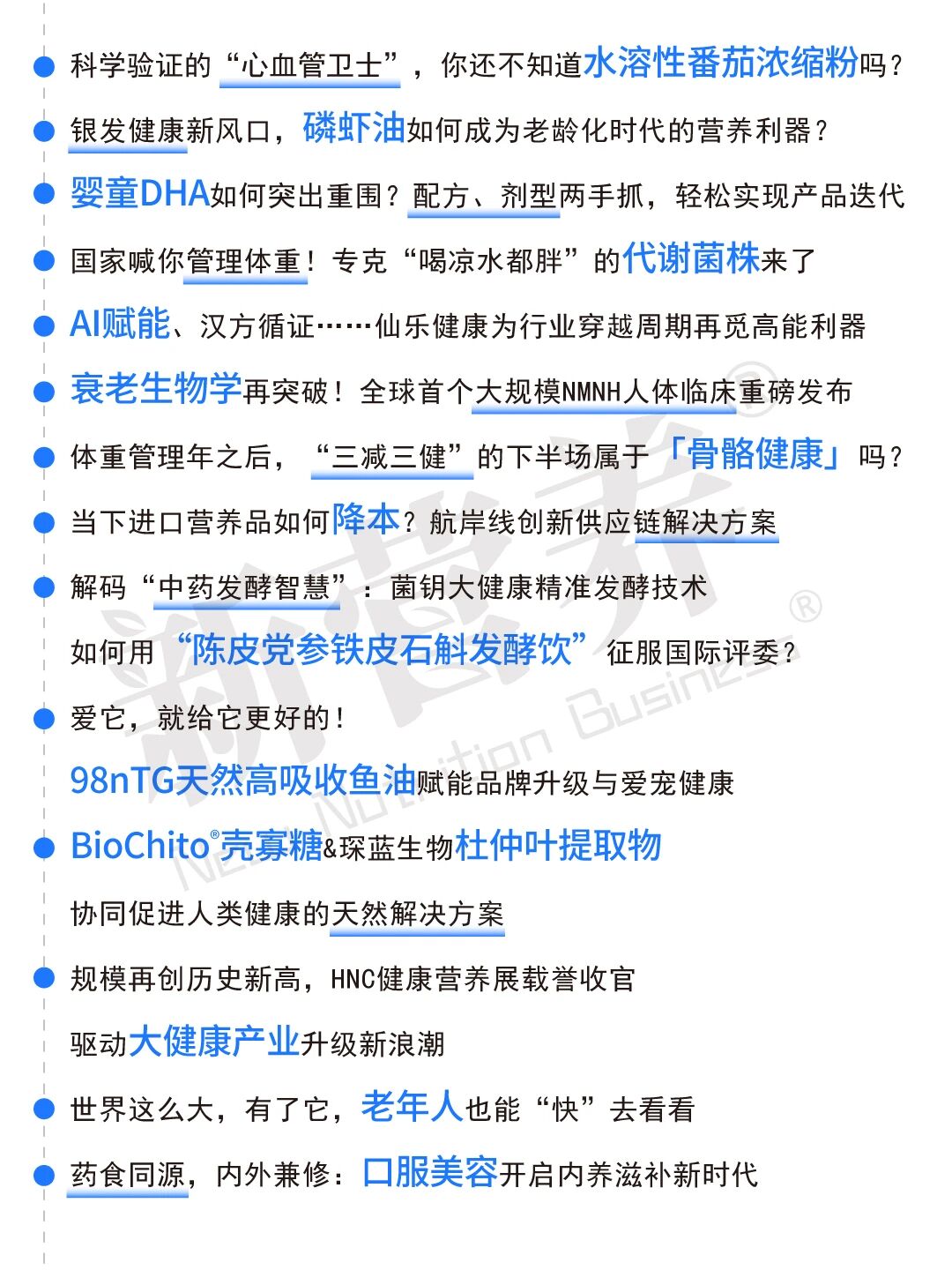*文章中涉及的产品、成分、功效仅代表相关企业的观点,新营养仅基于信息传递目的进行转述,并不代表我们绝对认同相关宣称,也不支持任何产品的营销和销售。