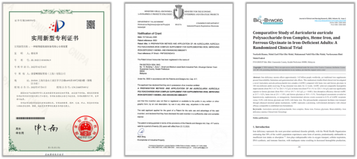 此外,Auricul-F®黑木耳多糖铁还拥有3大专利(1项工艺专利和2项补铁功效专利)和1项国际期刊的支持,多维科学力支持产品力。