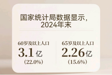 老龄化已成为影响社会经济和公共健康的重要议题。国家统计局的数据显示,2024年末,我国60岁及以上人口达到3.1亿人,占全国人口的22.0%;其中,65岁及以上人口2.2亿人,占全国人口的15.6%。2024年居民人均预期寿命已达79岁,从2010年到2023年的13年间,增长了3.8岁。人口高龄化、长寿化已经成为社会发展的重要趋势。