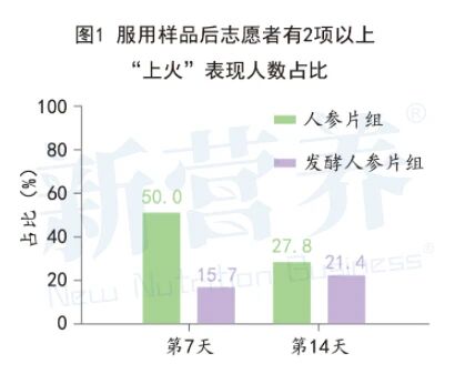 经过微生物发酵的人参,就像是经过了一场神奇的“变身”。在一项专业试食研究中,志愿者们连续服用发酵人参后,“上火”明显减少,相比起传统人参,发酵人参组大大降低了“上火”几率!这意味着发酵人参在保留传统人参诸多益处的同时,还巧妙地规避了传统人参的“燥性”弊端,使其更适合各类人群长期服用,也让人参的滋补功效更加温和、亲和,能够更好地融入人们的日常养生之中,为人们的健康保驾护航。(见图1)