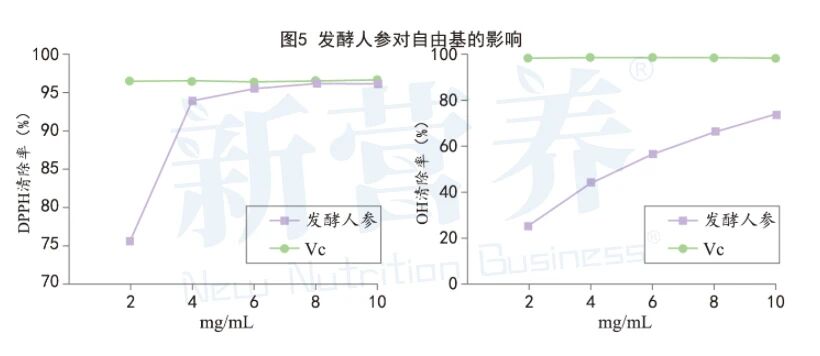 发酵人参就像一个“抗氧化小卫士”,在实验室测试中,它能很好地清除有害的自由基,比如DPPH自由基和羟基自由基。这些自由基是身体衰老和生病的“坏家伙”,发酵人参能够把它们“赶跑”,帮助身体保持年轻和健康。(见图5)