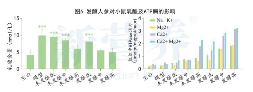 对于现代人来说,抗疲劳是一个永恒的话题。研究显示发酵人参对小鼠的抗疲劳能力有显著提升。它能帮助小鼠减少运动后的疲劳感,比如减少乳酸和尿素氮的积累(身体产生疲惫感的“导火索”),同时增加肝糖原的储备(身体的能量“仓库”)。相比未发酵的人参,发酵人参在这些方面表现得更好,就像一个“超级能量补给站”,让小鼠更有活力。(见图6)