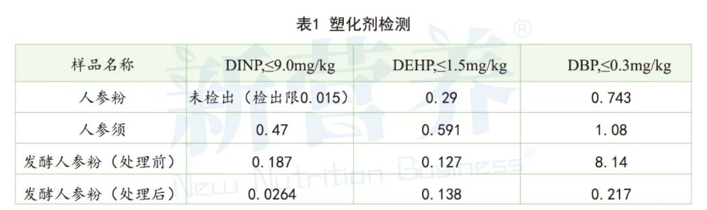 参照《卫生部关于通报食品及食品添加剂邻苯二甲酸酯类物质最大残留量的函(卫办监督函〔2011〕551号)》,塑化剂残留也符合相关标准要求。(见表1)