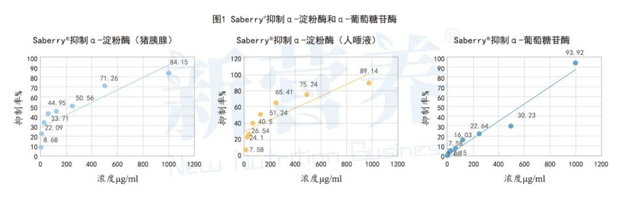 阻断碳水吸收:体外研究证实[3](来源:doi10.1002/jsfa.10020),Saberry®余甘子具有抑制肠道中的α-淀粉酶和α-葡萄糖苷酶的作用,同时抑制碳水分解和单糖吸收。这意味着它能减少食物中的糖分被分解吸收进入血液,从而避免血糖骤升和后续的脂肪囤积,从源头管理能量摄入。(见图1)